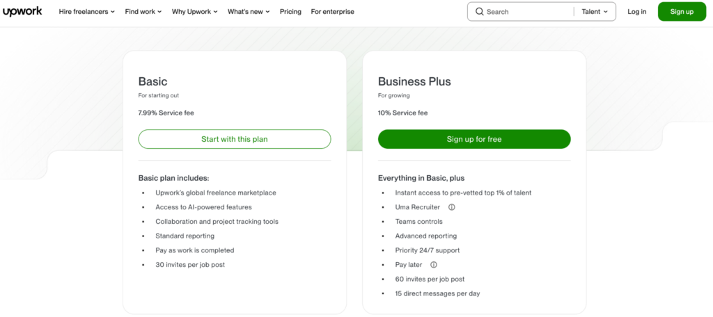 Despite Upwork’s complex fee structure, the average effective rate for freelancers is lower than Fiverr’s flat 20%.
