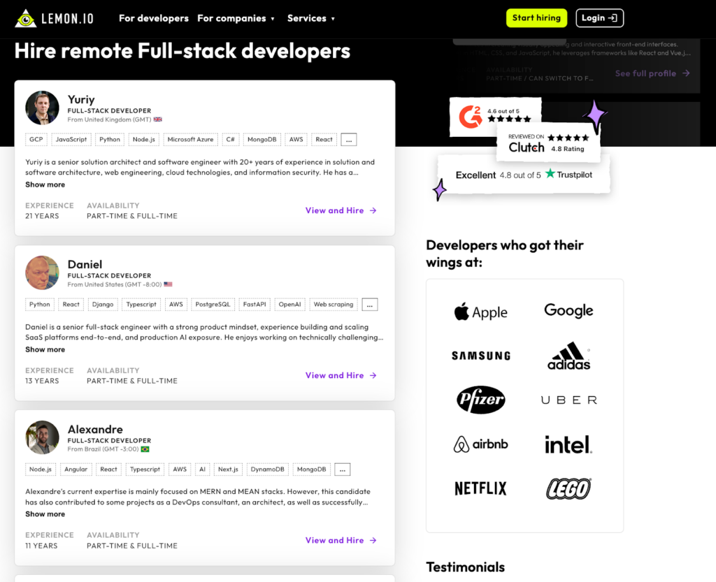 Lemon.io, the marketplace for vetted senior developers, was built specifically for startups and growing tech teams that need the right developer who fits values, stage, and stack now, not eventually.